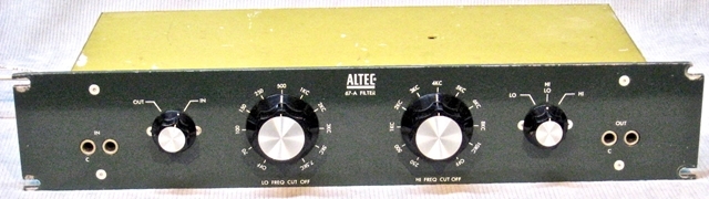 This is an early version of the Altec 9067b filter, and it uses a similar layout and construction.  The most notable difference on the front panel is the greater spacing used between the filter frequency detents (this version has about 300 degrees of rotation) compared with the switches used on the later models.