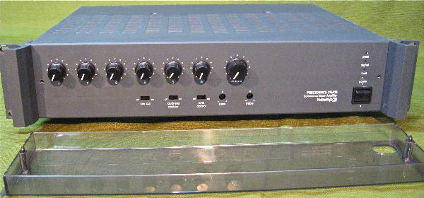 Fully tested, this unit is from a small conference facility where it was used in a corporate board room. Comes with the clear plexi security cover. Out of the box these models will drive 8Ω or 70 Volt lines, accept any type of input including phone lines. It has a multitude of features that make it a great mixer for just about any application.