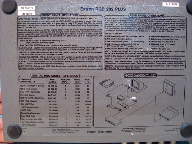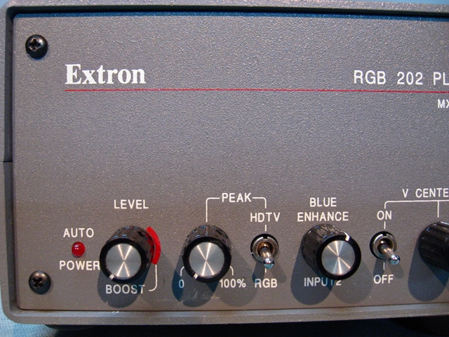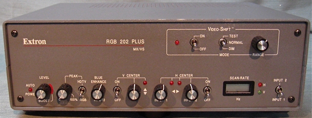 Computer video interface for Projectors, Monitors, and Panels. Retired by Extron, this is an early model with 2 9 pin inputs and RGBHV output. In VVG condition, untested.