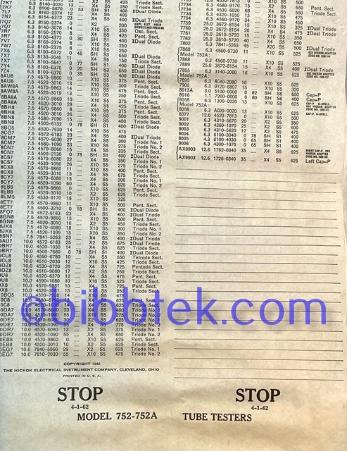 - HIckok Roll Chart models 752-752A