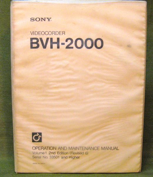 - Sony BVH-2000 Operation and Maintenance Manual Volume 1 2nd Edition (Revised 6)