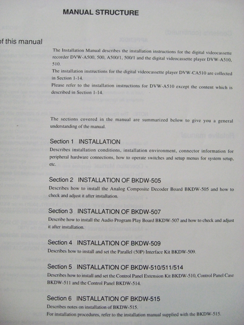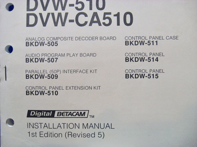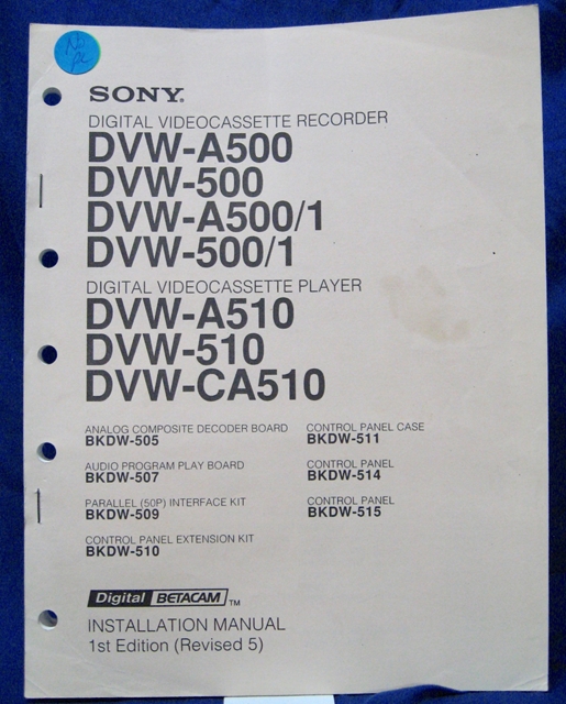 - Sony DVW-A500/500/(A500/1)/(500/1)/A510/510/CA510 Installation Manual 1st Edition (Revised 5)