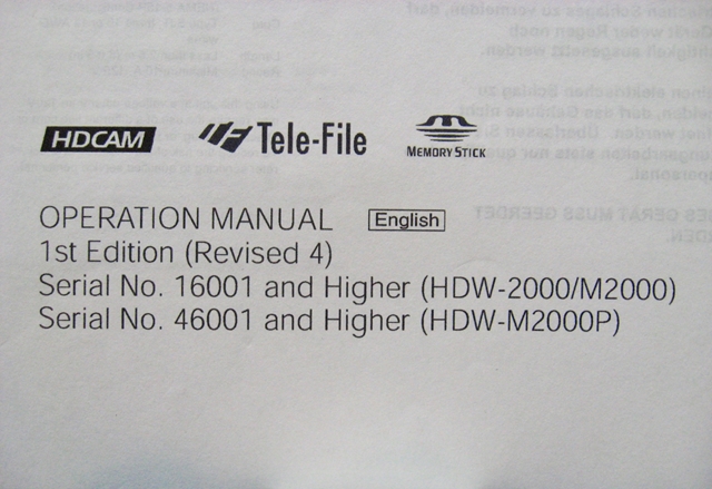 - Sony HDW-2000/M2000/M2000P Operation Manual 1st Edition (Revised 4)