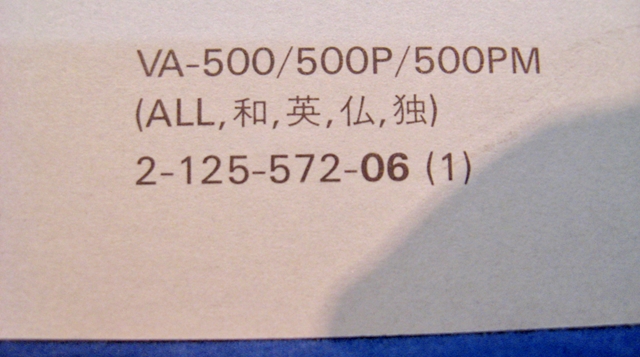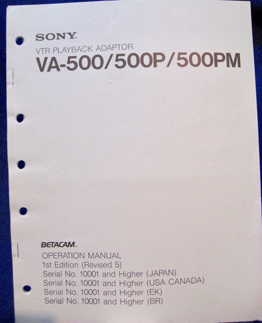- Sony VA-500 Maintenance Manual 1st Edition (Revised 5)